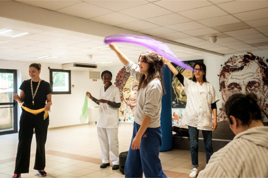 Hélène est formée à l’enseignement de la danse adaptée et inclusive pour les personnes en situation de handicap moteur et polyhandicap auprès de la compagnie Mozaik Danses.